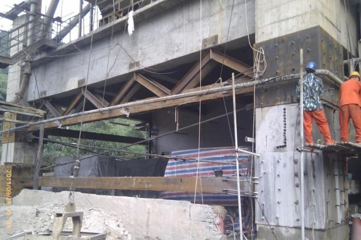 安陽鋼鐵廠熱連軋旋流井露天棧橋混凝土柱糾偏加固工程