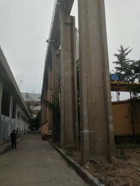 本工程于2012年實(shí)施,項(xiàng)目位于福建龍巖,因龍廈鐵路象山隧道發(fā)生巖溶突水地質(zhì)災(zāi)害,導(dǎo)致龍巖市適中鎮(zhèn)新豐水泥廠廠區(qū)地基沉降,其中燒成窯尾1號(hào)車間鋼結(jié)構(gòu)塔架(高76m)發(fā)生傾斜。為了盡快恢復(fù)生產(chǎn),確保結(jié)構(gòu)安全,受業(yè)主委托,由巨成結(jié)構(gòu)設(shè)計(jì)施工總承包,采用鋼滑道截柱糾偏,使結(jié)構(gòu)的傾斜率滿足規(guī)范要求,頂升工期為2天。