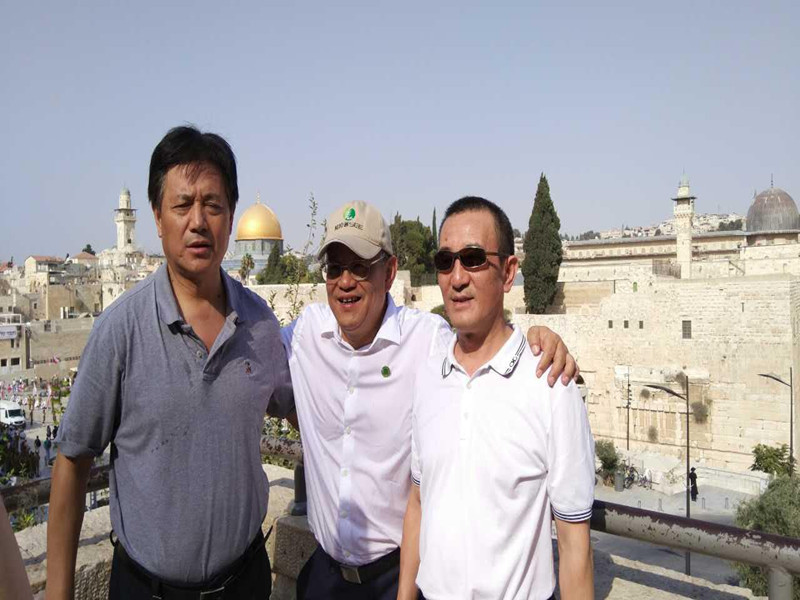 董事長(zhǎng)高作平(左)在耶路撒冷與武大校董、校友企業(yè)家理事會(huì)副理事長(zhǎng)艾路明(中),武大校董、校友企業(yè)家理事楚天舒合影(右)