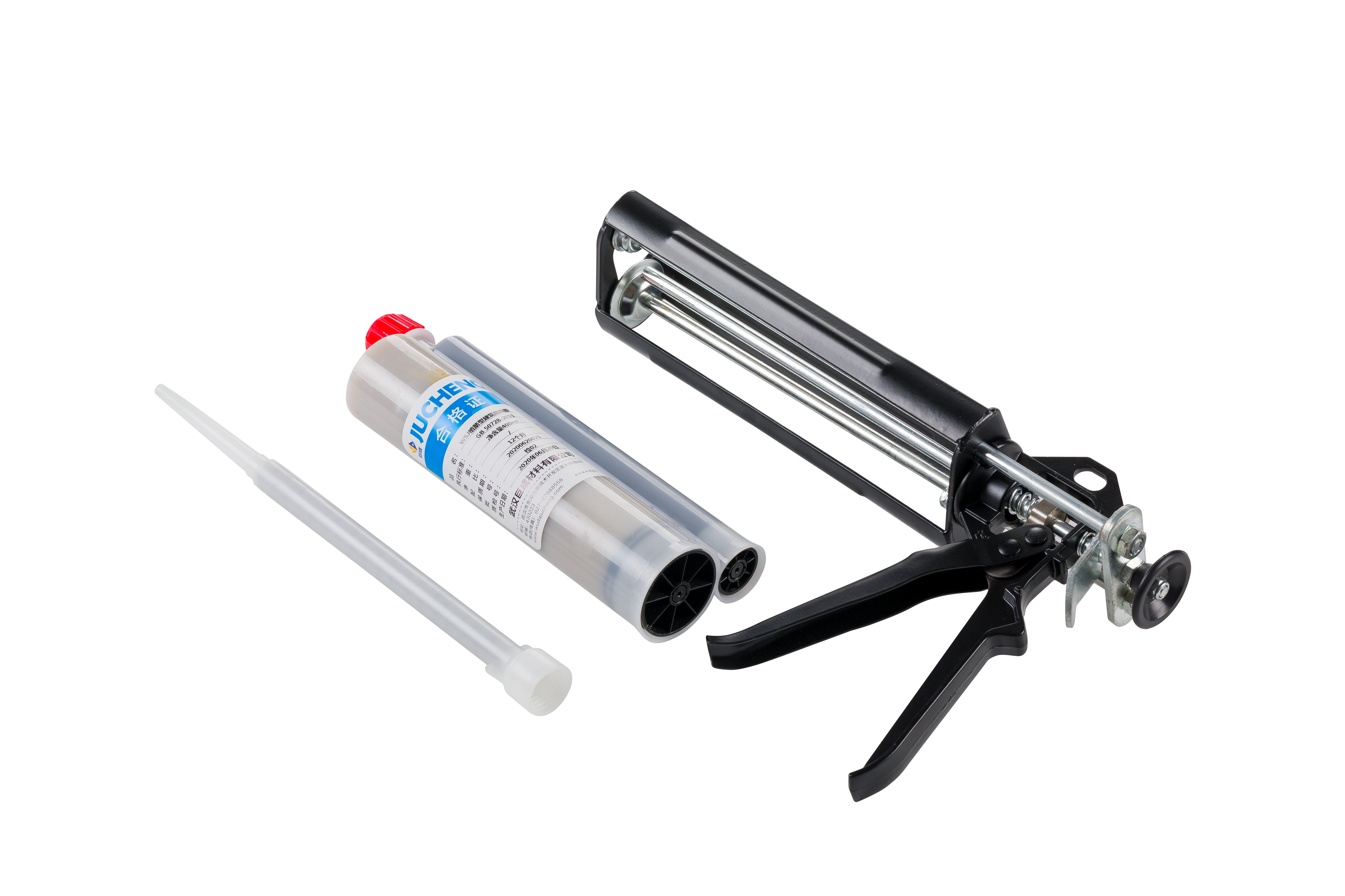 4. 當(dāng)使用管式植筋膠時(shí),首先必須確認(rèn)螺旋混合嘴完好,將其安裝到膠管上,放入植筋槍內(nèi)。然后按動(dòng)行程把手,舍棄開始流出的膠液約20g,觀察膠體顏色至均勻一致后開始注入孔內(nèi),注膠完成后立刻插入鋼筋,并按單一方向邊轉(zhuǎn)邊插到孔底??變?nèi)注膠量應(yīng)大于理論量,以植入鋼筋后有少許膠液溢出為準(zhǔn)。
