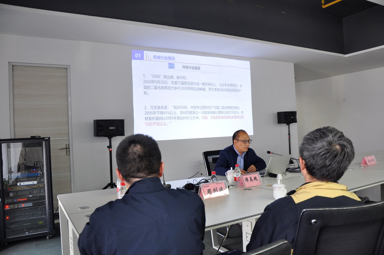 譚美超主任作了《風(fēng)力發(fā)電交流》技術(shù)講座,主要包括風(fēng)電行業(yè)情況、風(fēng)機(jī)基礎(chǔ)、風(fēng)機(jī)塔筒、風(fēng)力發(fā)電土建研究方向、風(fēng)力發(fā)電開發(fā)建設(shè)流程等,使全體員工對(duì)風(fēng)力發(fā)電有了更多的了解。
