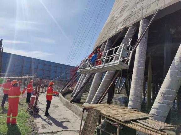 山東天源熱電有限公司三電廠2#涼水塔加固項目,位于山東省淄博市桓臺縣馬橋鎮(zhèn),2011 年投入使用,為5500㎡的雙曲線自然通風(fēng)涼水塔,總高度為 115.00m,塔筒外壁涂裝21382㎡,內(nèi)壁涂裝21230㎡,合同總造價為1565.5萬元。本工程從2021年8月8日開始施工,預(yù)計將于2022年6月底完工。