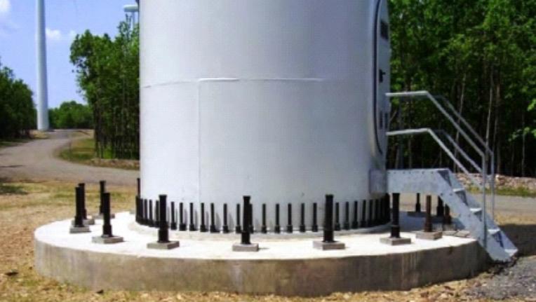 該?場發(fā)電機組共33臺,裝機總?cè)萘?9.5MW。?機基礎采?P&H巖?錨桿?機基礎技術。項?于2013年12?30?投產(chǎn)發(fā)電,運?過程中發(fā)現(xiàn)部分?機基礎原設計的18根50mm巖?預應?錨桿出現(xiàn)數(shù)量不等的斷裂情況,經(jīng)專家論證,原錨桿斷裂主要是疲勞荷載導致。