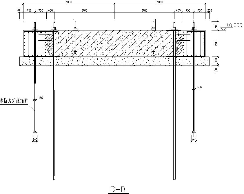 結(jié)合專家意?及相關技術資料并根據(jù)現(xiàn)場實際情況,對?機基礎進?加固處理。?先對原?機基礎采取加?截?法進?加固,然后在基礎擴?區(qū)域增加18根巖?預應?錨索進?加固。預應?錨索底部采?擴孔?鎖錨固技術。