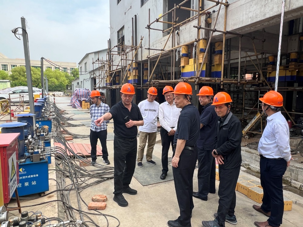郭生練主席一行參觀了巨成群控同步頂升工程試驗(yàn),聽取了巨成副總經(jīng)理張暢對(duì)該項(xiàng)試驗(yàn)的詳細(xì)介紹。領(lǐng)導(dǎo)一行深入到試驗(yàn)現(xiàn)場(chǎng),詳細(xì)了解試驗(yàn)各項(xiàng)創(chuàng)新技術(shù), 并結(jié)合城市更新、水利方面等運(yùn)用提出了很多指導(dǎo)意見和建議。副總經(jīng)理張暢向各位領(lǐng)導(dǎo)介紹了巨成該項(xiàng)技術(shù)目前已經(jīng)成功應(yīng)用在南水北調(diào)渡槽頂升、小區(qū)糾偏頂升、廠房改造等方面。各位領(lǐng)導(dǎo)對(duì)巨成群控同步頂升技術(shù)的創(chuàng)新和對(duì)社會(huì)發(fā)展的巨大意義給予了高度評(píng)價(jià)。
