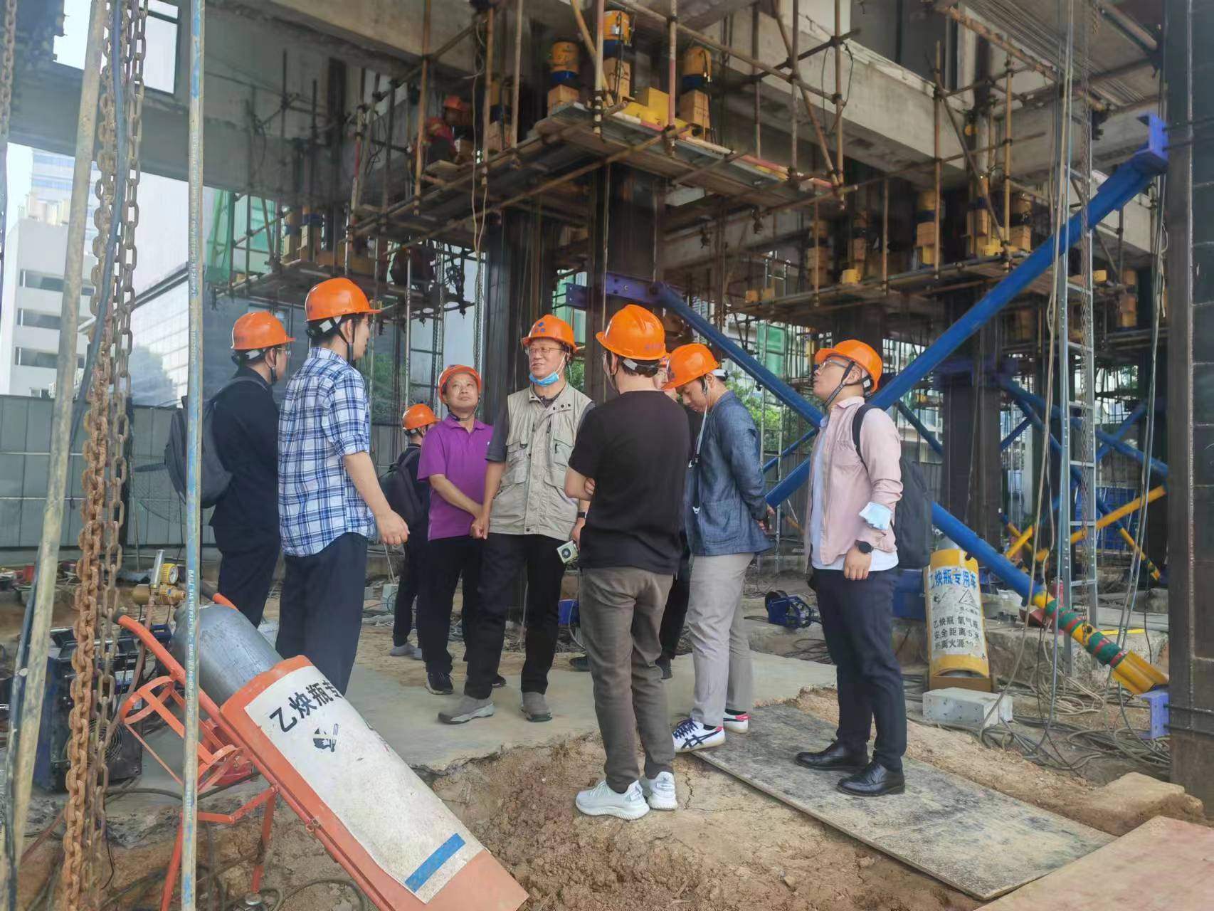 在巨成鋼滑道群控同步頂升工程試驗項目現(xiàn)場,研究院院長助理周志勇對鋼滑道群控同步頂升試驗的背景和目的進(jìn)行了介紹,對該技術(shù)的安全性、高效性、經(jīng)濟(jì)性等特點進(jìn)行說明,雙方對鋼滑道頂升技術(shù)應(yīng)用場景展開了熱烈討論,并就試驗過程中的相關(guān)技術(shù)要點進(jìn)行了深入交流。