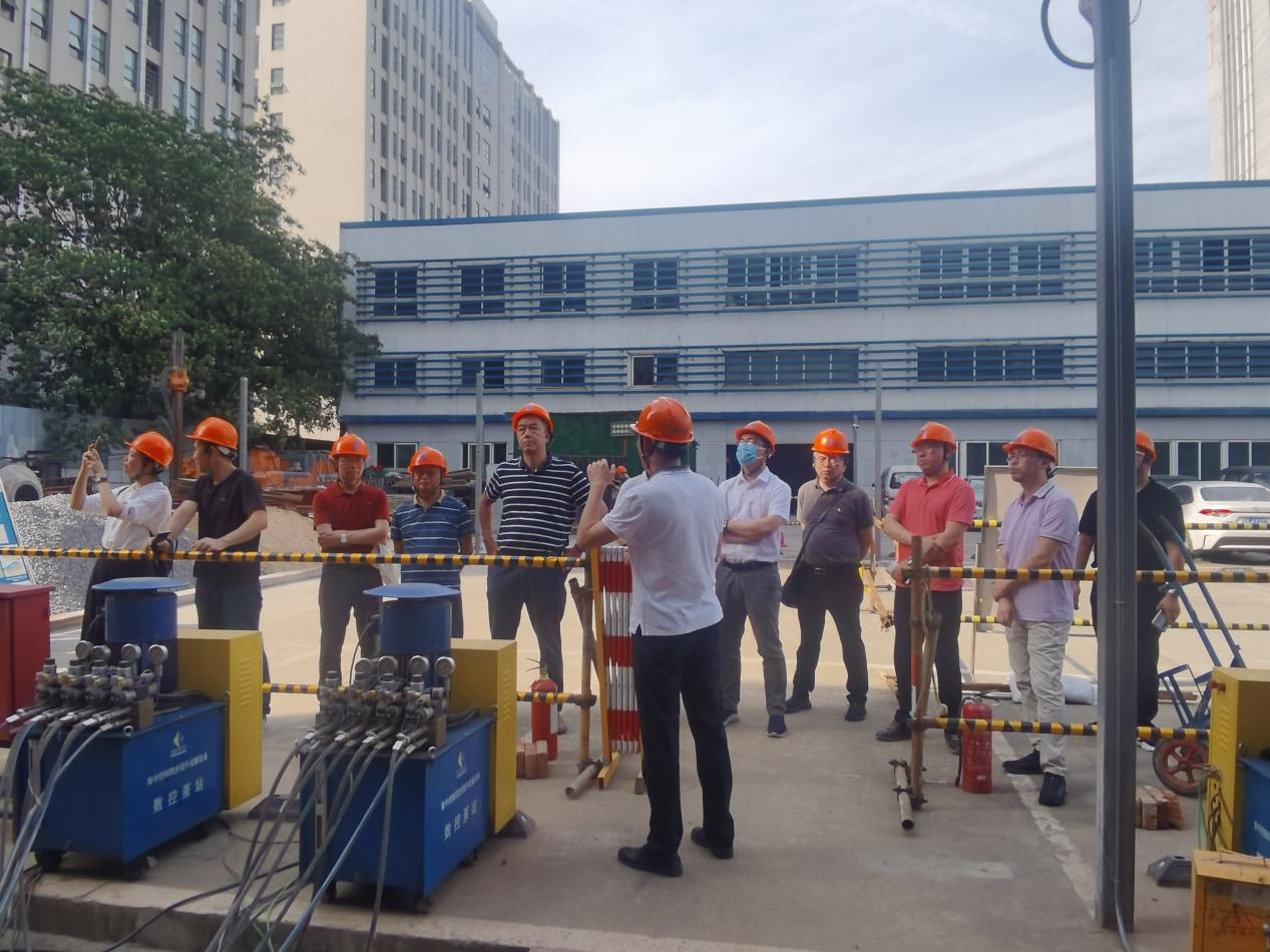 考察團(tuán)一行來(lái)到巨成群控同步頂升工程試驗(yàn)項(xiàng)目現(xiàn)場(chǎng),巨成研究院院長(zhǎng)助理周志勇介紹了鋼滑道頂升技術(shù)的起源與發(fā)展,本次頂升試驗(yàn)的背景、目的和群控同步頂升大型數(shù)控設(shè)備以及頂升應(yīng)用前景。雙方對(duì)鋼滑道頂升技術(shù)和應(yīng)用場(chǎng)景展開(kāi)了深入的討論和交流,大家一致認(rèn)為巨成群控同步頂升技術(shù)技術(shù)先進(jìn),前景廣闊。