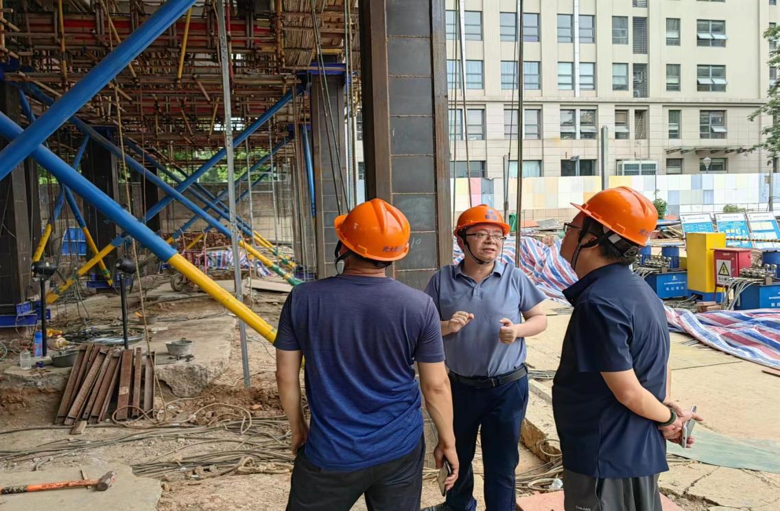 陳總一行考察了巨成鋼滑道群控同步頂升工程試驗項目現(xiàn)場,巨成副總經(jīng)理張暢介紹了頂升試驗的具體情況及未來憧憬。并對現(xiàn)場群控同步頂升大型數(shù)控設(shè)備以及頂升原理做了詳細(xì)的介紹。雙方對鋼滑道頂升技術(shù)應(yīng)用場景展開了熱烈討論,并對試驗過程中的相關(guān)技術(shù)要點、施工流程進(jìn)行了深入交流。