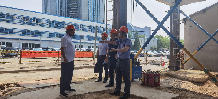 瞿總一行首先參觀了巨成群控同步頂升工程試驗項目現場,對巨成頂升增層技術嘆為觀止,對巨成頂升增層技術能夠很好的解決老舊小區(qū)停車難的問題,認為該技術能在城市更新、老舊小區(qū)改造領域發(fā)揮重大作用。