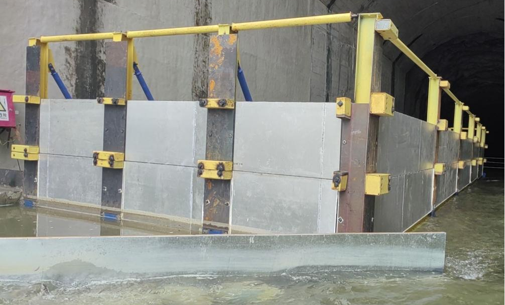本項(xiàng)目重點(diǎn)之一是可快速轉(zhuǎn)運(yùn)的拼裝式圍堰,結(jié)合密封材料,能快速形成一個(gè)隔水空間。利用拼裝圍堰安裝便捷性,對(duì)隧洞進(jìn)行分塊修復(fù),達(dá)到在不斷流、確保隧洞過水安全的情況下,對(duì)隧洞進(jìn)行全覆蓋修復(fù)。