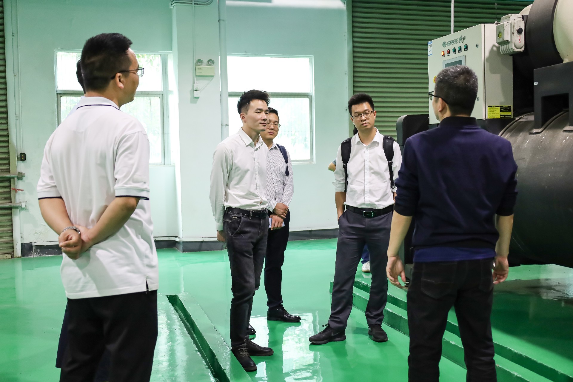 技術(shù)人員帶領(lǐng)大家觀摩了園區(qū)能源托管現(xiàn)場的配電房、空調(diào)機房,講解了“富慧能”智慧管理平臺的實際應(yīng)用和驗證,及數(shù)字化科技在能源運維中對于“人、機、料”的高效管理。